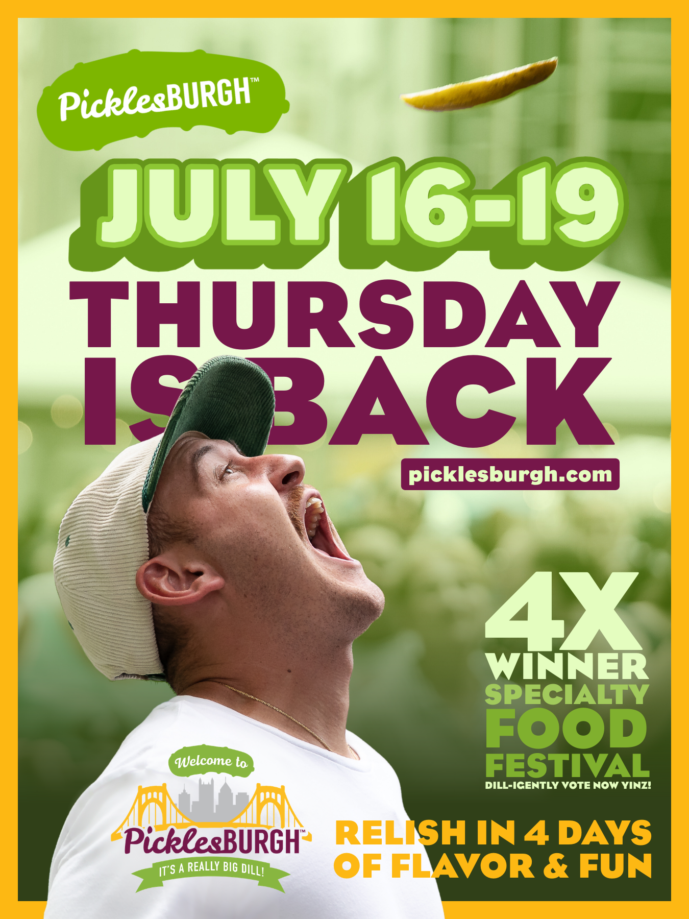 Relish in 4 days of flavor and fun! Returning for it’s 11th Year, the 2026 Picklesburgh Festival, will return on Thursday, July 16th through Sunday, July 19, 2026. More details about Picklesburgh 2026, including the schedule and footprint, will be announced over the coming weeks right here at Picklesburgh.com